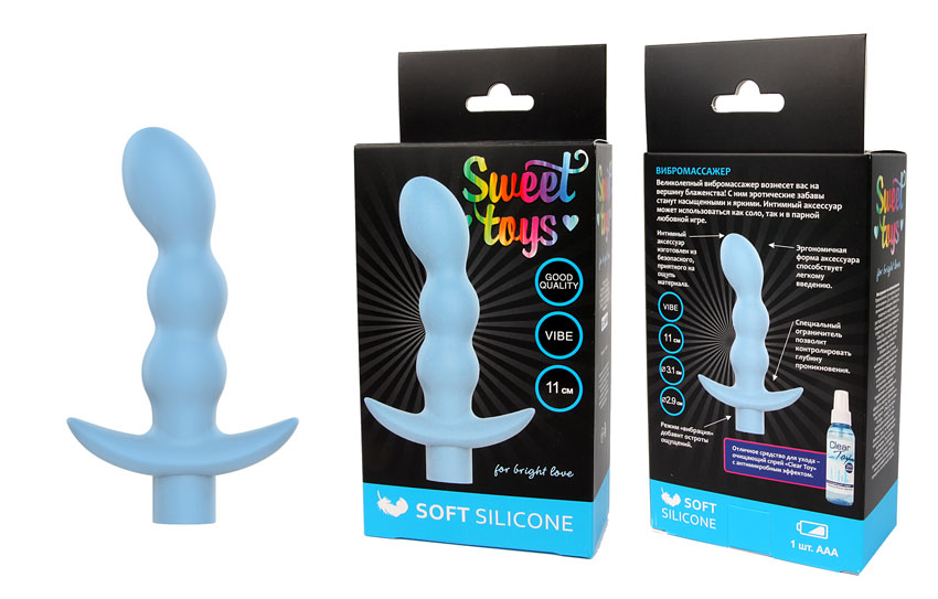 Характеристики Вібратор силіконовий вагінальний для точки G SWEET TOYS блакитний L 11 см d 2, 9x3, 1 см