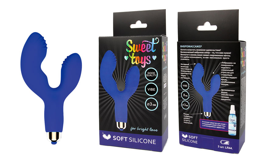 Характеристики Вібратор точки G силіконовий зі стимуляцією клітора ребристий SWEET TOYS синій 8,0 см d 3 см