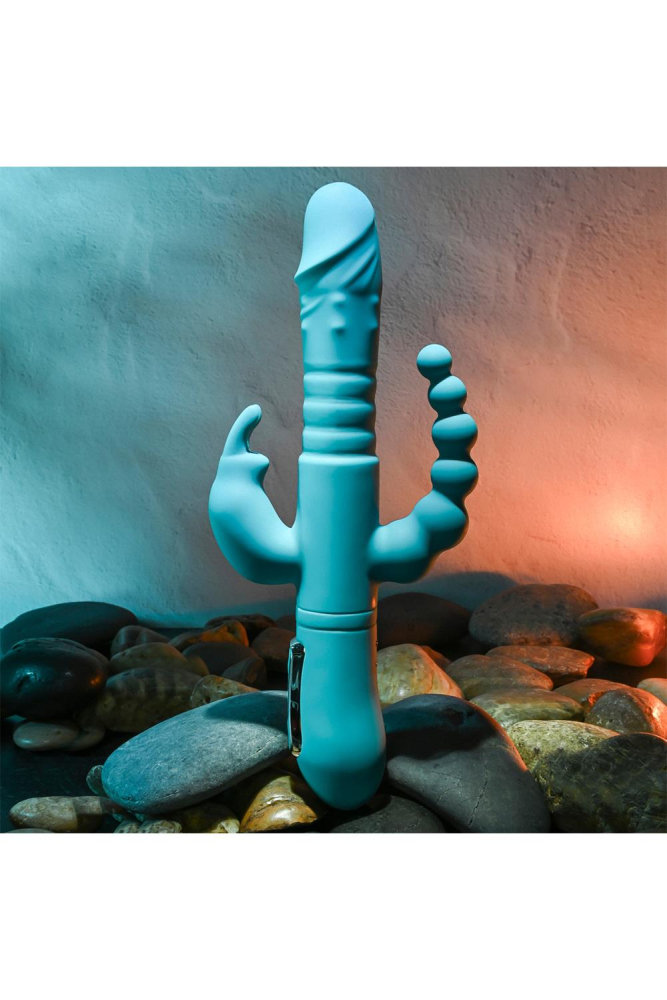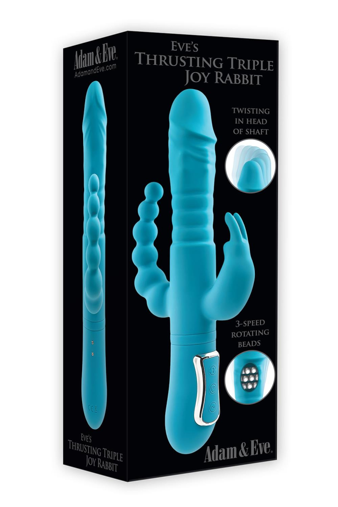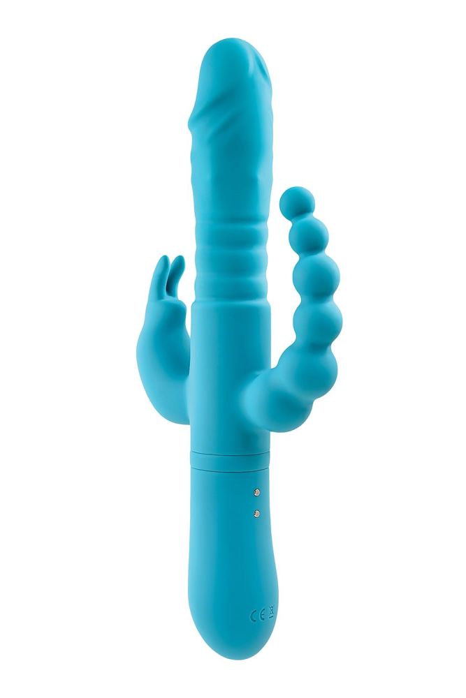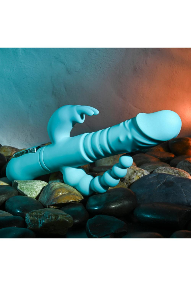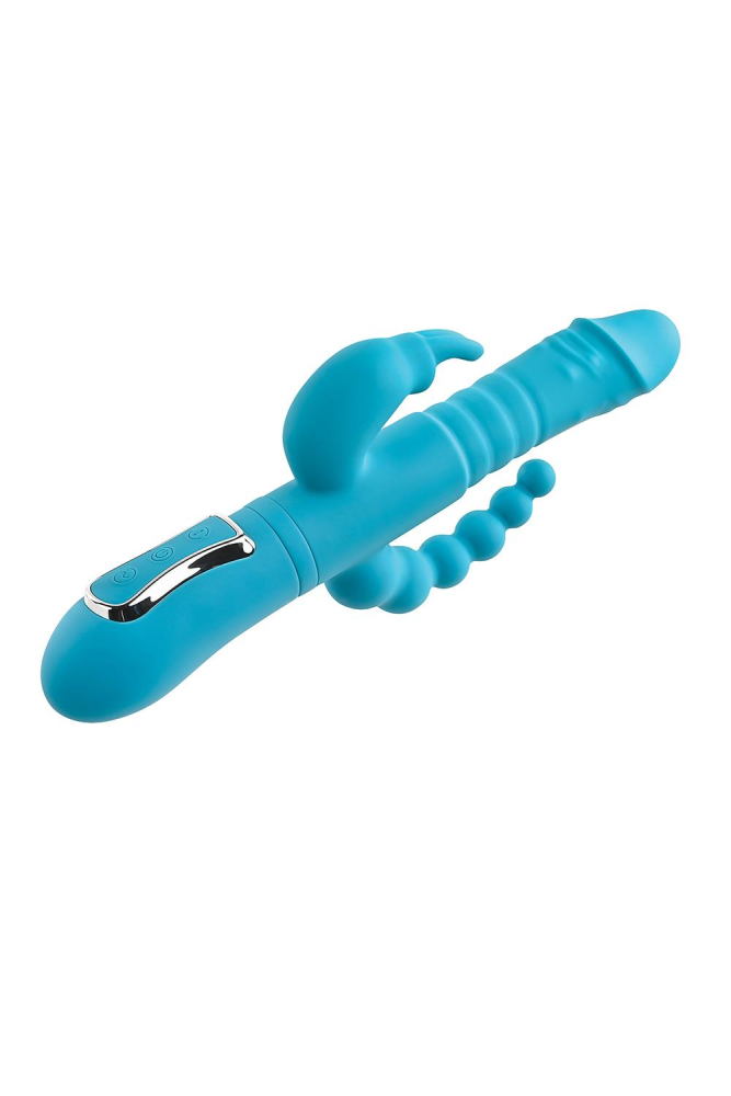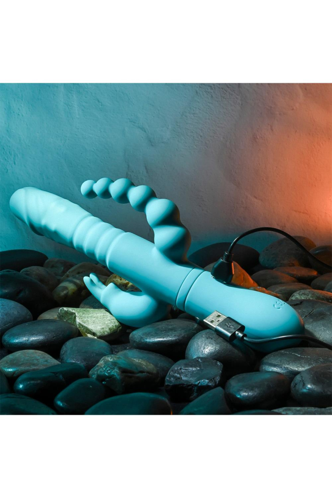 Вібратор потрійної стимуляції Вагінальний Кліторальний стимулятор та Анальний блакитного кольору Adam & Eve Eve's Thrusting Triple Joy Rabbit