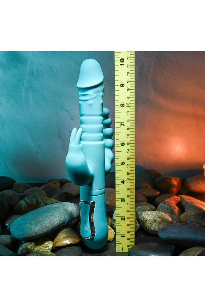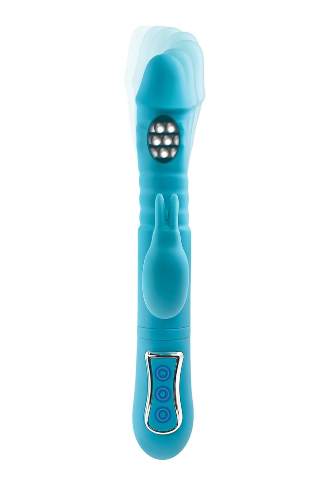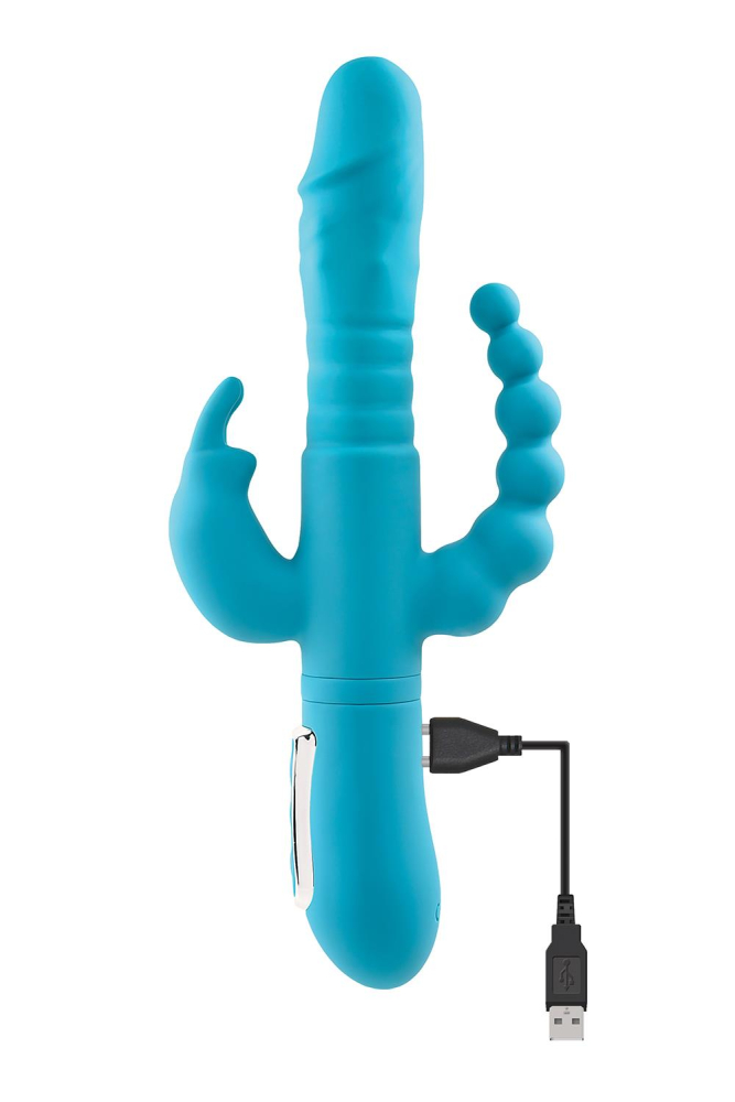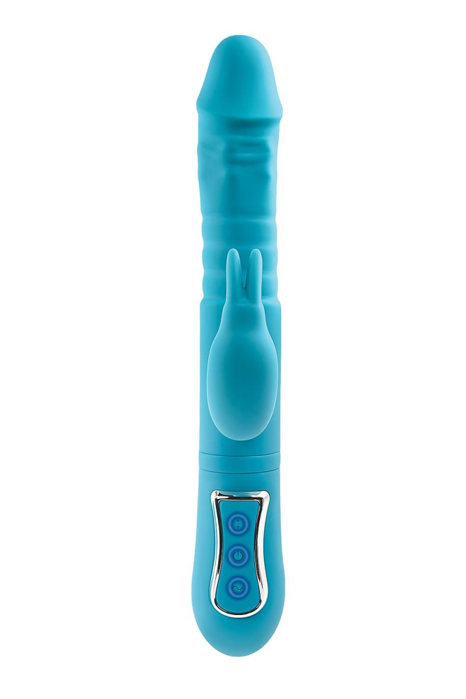 Характеристики Вібратор потрійної стимуляції Вагінальний Кліторальний стимулятор та Анальний блакитного кольору Adam & Eve Eve's Thrusting Triple Joy Rabbit