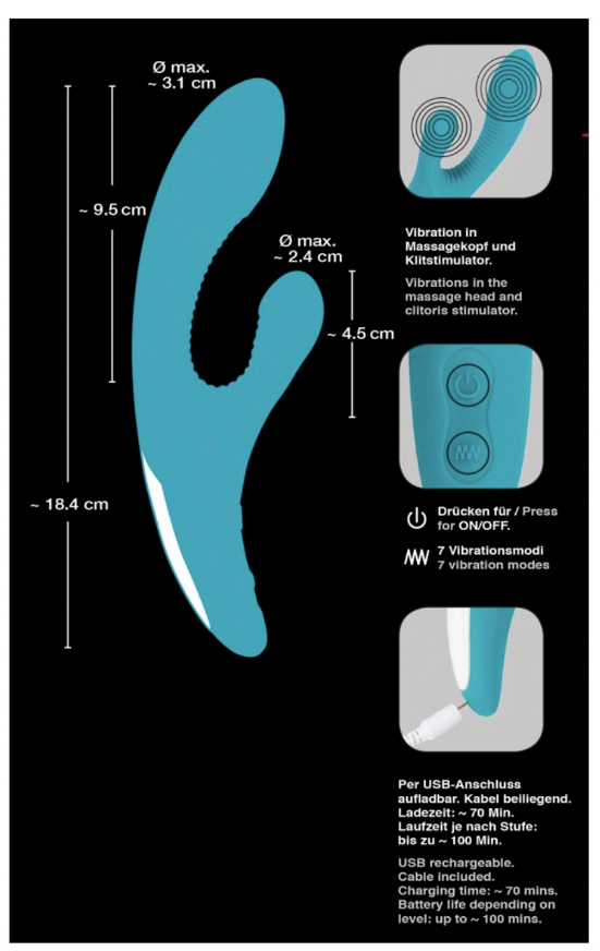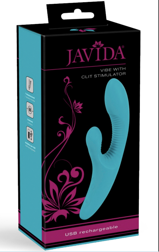 Характеристики Вібратор вагінальний для точки G з відростком для стимуляції клітора бірюзового кольору Javida
