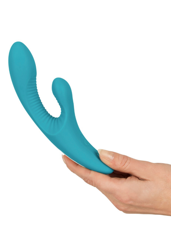 Вібратор вагінальний для точки G з відростком для стимуляції клітора бірюзового кольору Javida