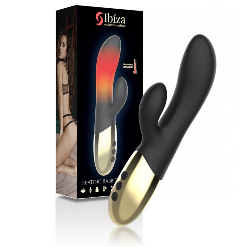Вібратор вагінальний з підігрівом та кліторальним відростком Ibiza Heating Rabbit Vibrator чорного кольору