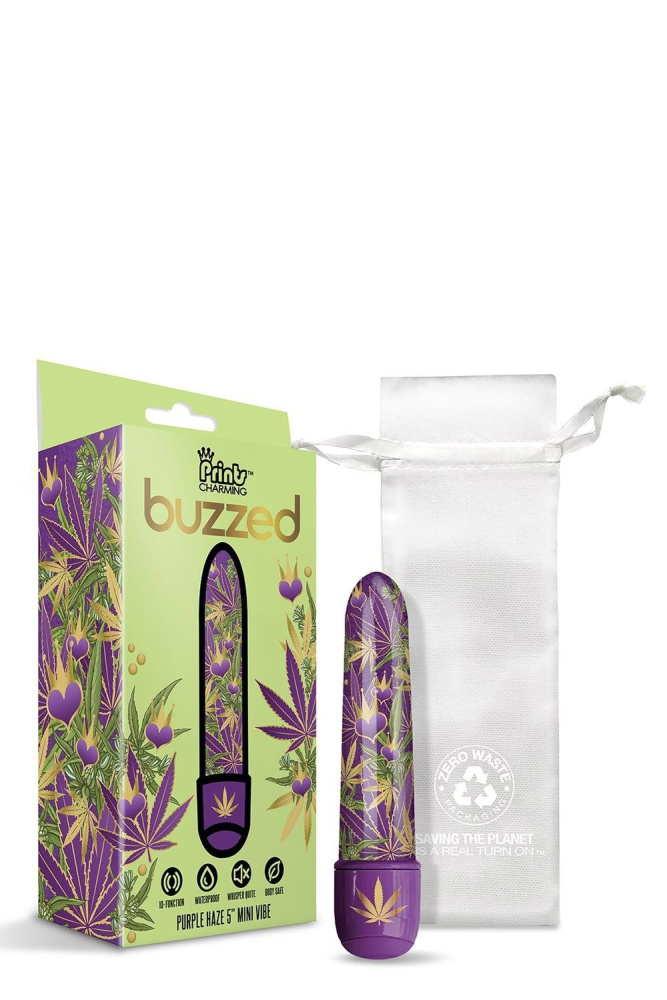 Цей класичний гладкий міні-вібратор Purple Haze із серії Prints Charming Buzzed має забавні яскраві візерунки коноплі та 10 потужних функцій.