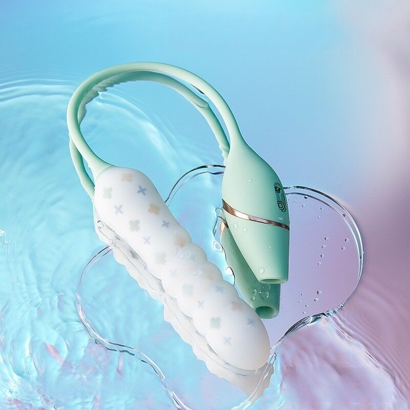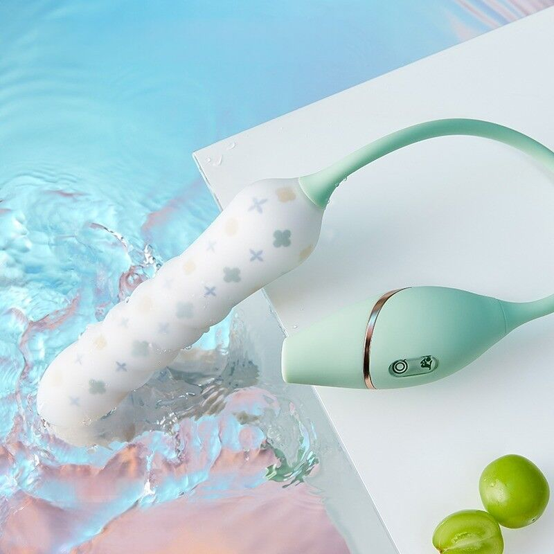 Вібратор вагінальний із вакуумним стимулятором зелений KISTOY Cathy Pro