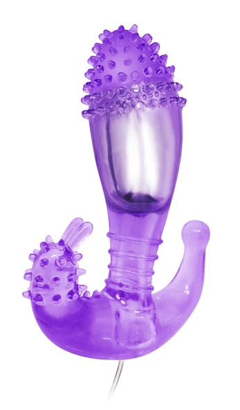 Цей пристрій призначений для масажу точки G, клітора та ануса, даруючи жінкам неймовірні відчуття та приголомшливі оргазми. Невеликий за розмірами вібростимулятор виконаний з ТПР - м'якого, пластичного матеріалу, приємного на дотик. Вібратор має збільшену, загострену і злегка загнуту голівку з невеликими м'якими виступами, призначеними для інтенсивнішої стимуляції стінок піхви. Особливість стимулятора - наявність відразу 2 відростків - для одночасної вагінальної, анальної та кліторальної стимуляції. Вібростимулятор має 1 режим вібрації, інтенсивність якого регулюється за допомогою коліщатка на дротовому пульті управління. Віброелемент розташований у головці вагінального відростка. Працює від 2 батарейок типу АА (у комплект не входять!).