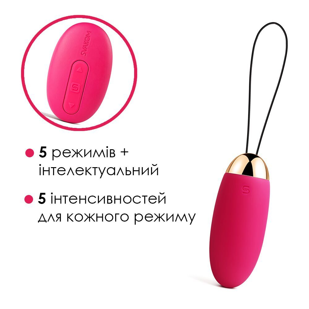 Ніжний і потужний вібратор з дистанційним управлінням-те, що потрібно кожній дівчині! Тим більше, якщо це багатофункціональний вібратор Сваком, який стане в нагоді і як вібропуля для зовнішнього використання, і як віброяйце для внутрішнього. Пропонуємо купити віброяйце з пультом управління Svakom Elva Plum Red-компактне і потужне, з 5 режимами роботи, 5 рівнями інтенсивності і додатковим інтелектуальним режимом Svakom, який робить віброяйце унікальним! Вібрації будуть повільно наростати, перейдуть в збудливий ритм і приведуть тебе до незабутньої кульмінації!