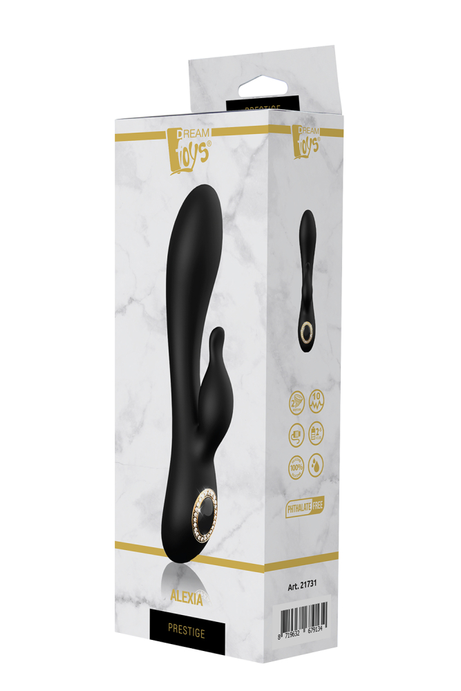 Вібромасажер-кролик зі стимуляцією клітора чорний Dream Toys PRESTIGE ALEXIA LUXXE