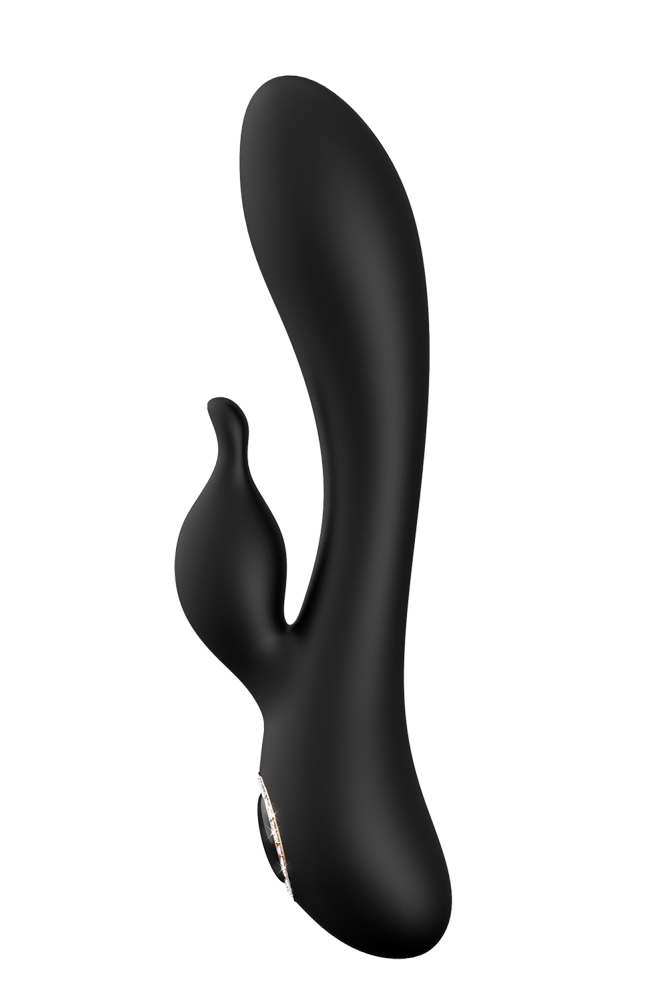 Alexia-це чорний вібратор кролик зі стильною кнопкою у формі дорогоцінного каменю, гнучкою головкою і потужним стимулятором клітора.