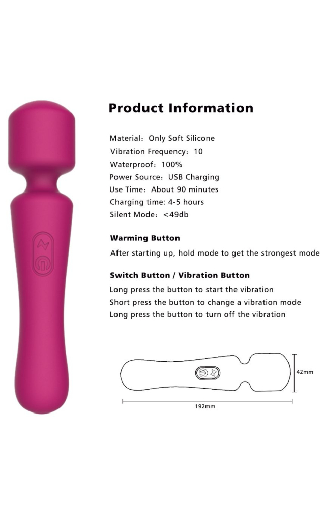 Потужна і зручна іграшка стане для вас порятунком, якщо потрібно буде помасажувати м'язи, що затекли, а її вібруюча покрита силіконом головка швидко стане улюбленим джерелом задоволення після важкого дня. Але ця модель створена не лише для масажу. Вібромасажер можна застосовувати до будь-яких зон тіла, і якщо зараз ви подумали про мастурбацію або секс з партнером, то ви маєте рацію. Кожен із десяти режимів вібрації іграшки – це шлях до справді незабутніх відчуттів, а варіантів використання моделі рівно стільки, скільки підкаже ваша еротична фантазія. Можна приголубити нею соски чи клітор, мошонку чи пеніс. Корпус іграшки покритий матеріалом, який точно не викличе подразнення ні зовні, ні всередині, а її конструкція не пропускає воду, що стане чудовою новиною для любителів інтимних ласк у ванні або під душем. До речі, перед введенням масажера не завадить змастити його лубрикантом на водній основі, тоді силікон не тертиметься за тіло.
