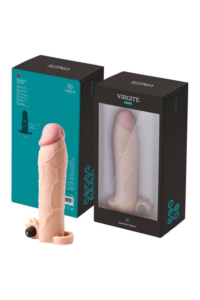 Насадка на пеніс Virgite S5 з вібрацією, бежева, 20 см