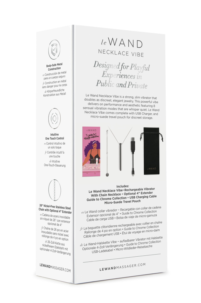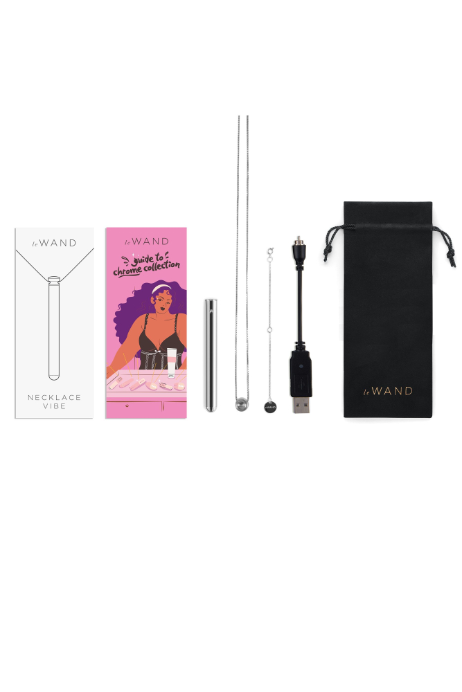 Le Wand Chain Vibe – це міцний та тонкий вібратор, який одночасно служить стриманою та елегантною прикрасою. Ця потужна вібрація забезпечує продуктивність та естетику завдяки 8 чуттєвим режимам вібрації, які працюють безшумно. У комплект Le Wand Chain Vibe входить зарядний пристрій USB і дорожня сумка з мікрозамші для непомітного зберігання.