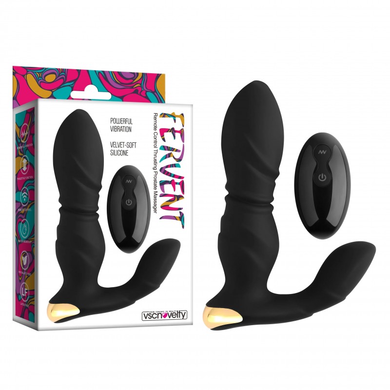 Вібростимулятор для простати Fervent Remote Control Thrusting Prostate Massager чорного кольору
