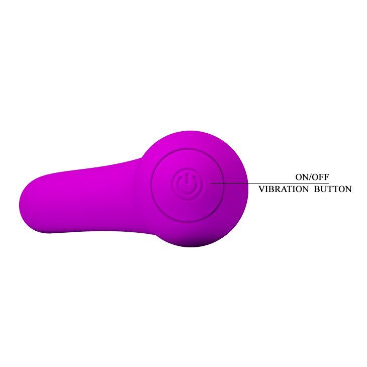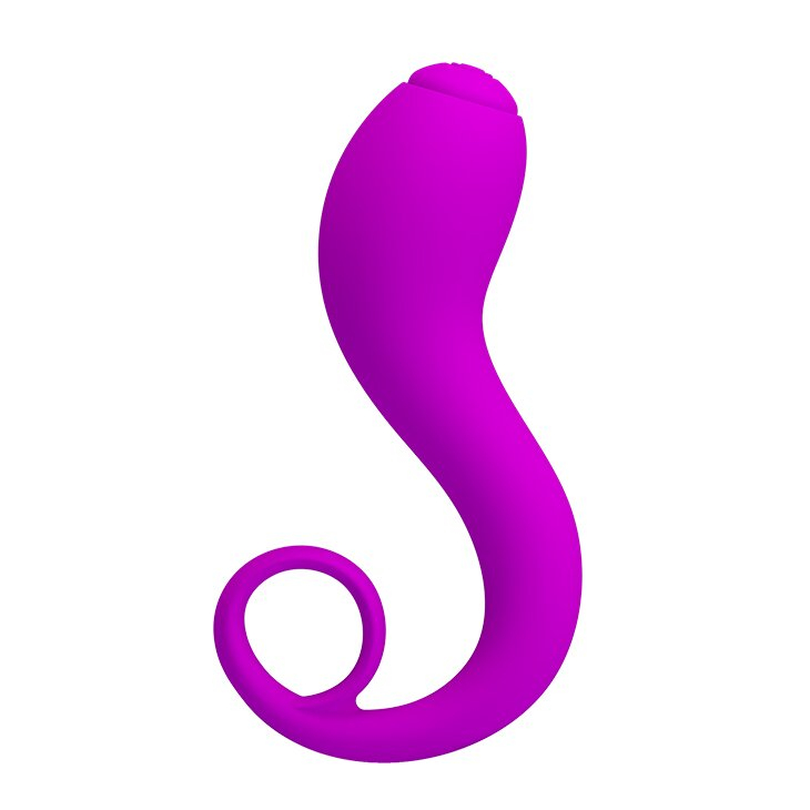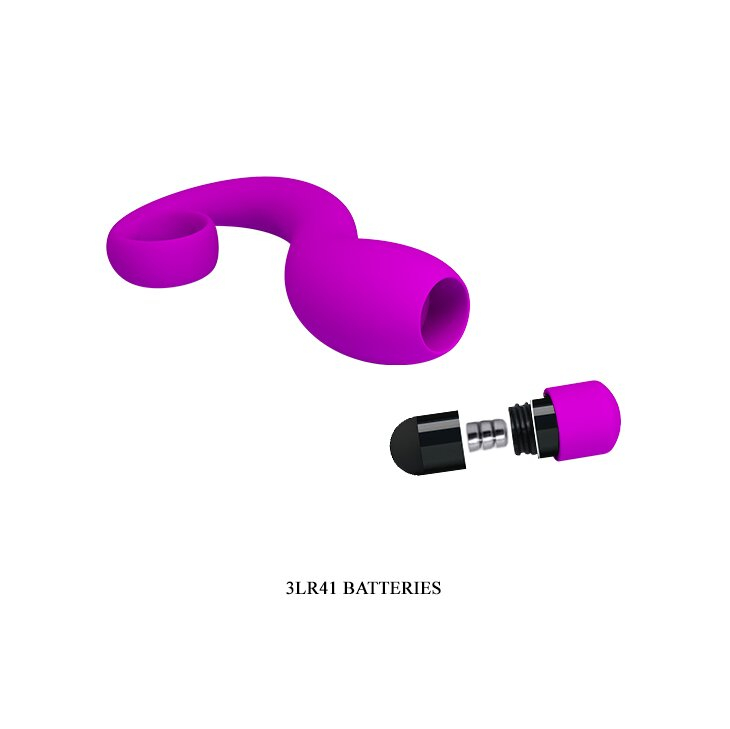 Вібростимулятор пурпурного кольору з обмежувальним кільцем біля основи.