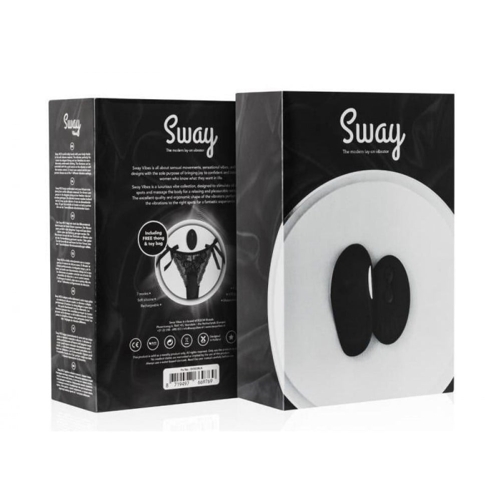Sway Vibes 3 робить будь-який захід сексуальним та спокусливим. Стринги з вібратором можна носити непомітно під одягом та легко керувати ними за допомогою пульта дистанційного керування. Sway Vibes 3 виготовлений із м'якого силікону, який легко гнеться. Таким чином, вібратор легко носити у спідній білизні навіть при тривалому використанні. Передайте керування та дозвольте вашому партнеру вибрати одну з 10 різних налаштувань вібрації. Що буде вашим коханим Звичайно, ви також можете використати маленький вібратор для стимуляції сосків та геніталій під час прелюдії. Sway Vibes 3 поставляється з мереживними стрінгами (розмір S – L). На ремінці є невеликий отвір, куди можна вставити іграшку.