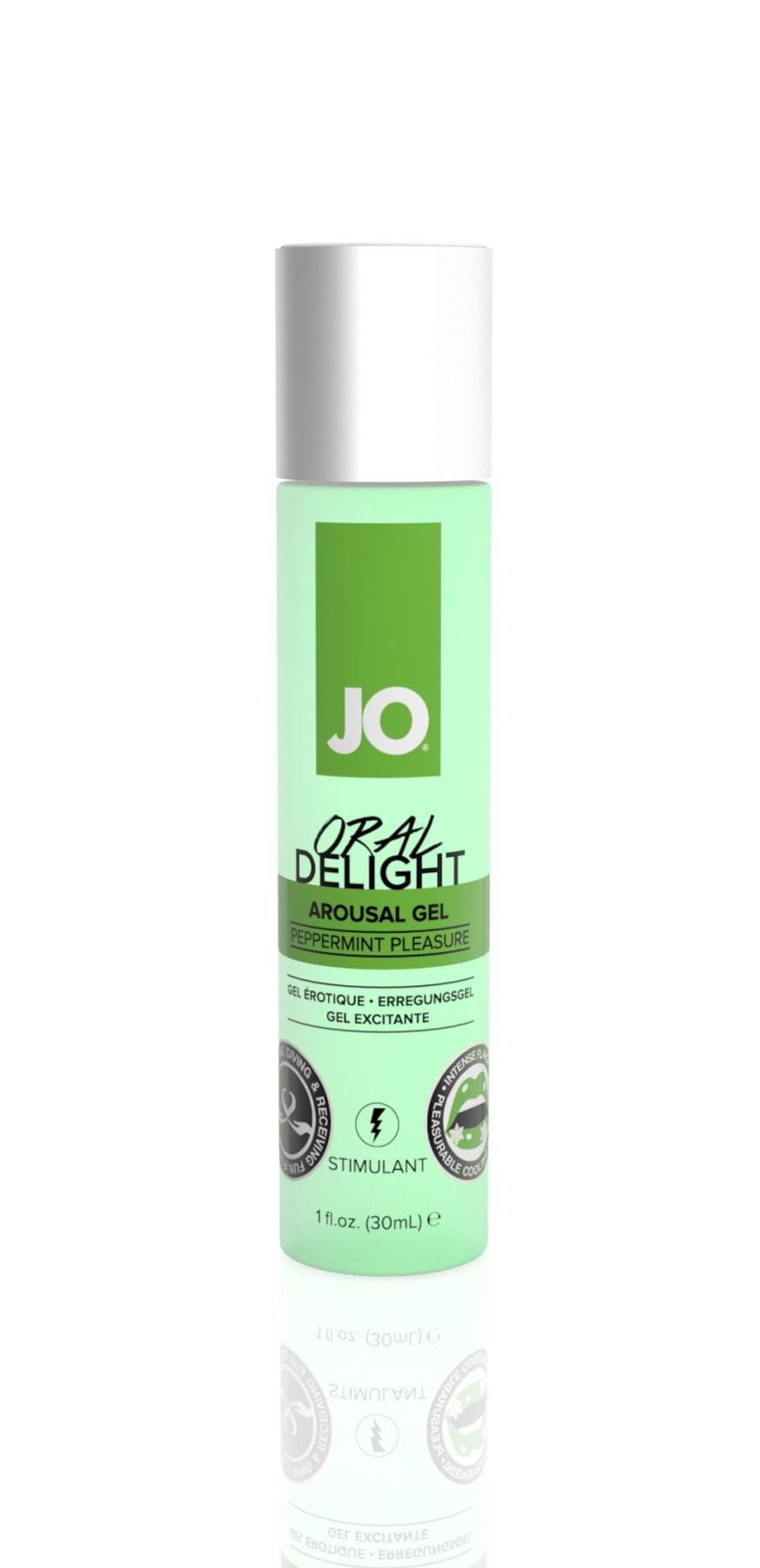 Збудливий гель для оральних ласк System JO ORAL DELIGHT-PEPPERMINT PLEASURE— перцева м'ята) - це ароматизований стимулюючий засіб на водній основі, що допомагає як зробити приємність партнеру, так і отримати його самому. Наростаючий охолоджуючий ефект досягається завдяки подвійному ударному поєднанню-екстракту перцевої м'яти і ментолу.