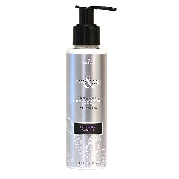 Пропонуємо купити масажний лосьйон Sensuva-Me & You Lavender Vanilla (125 мл) з феромонами, наповнений феромонами, натуральними маслами і екстрактами, створений за спеціальною формулою Hyper Glide для по-справжньому довгого чуттєвого масажу. Феромони, які підходять для чоловіків і жінок, створять хвилюючу атмосферу і подарують впевненість у своїй привабливості, а силікон в складі забезпечить тривале ковзання. Лосьйон огорне ніжним ароматом лаванди з теплою ноткою солодкої ванілі і зробить шкіру м'якою, гладкою і шовковистою. Флакон зі зручним дозатором!