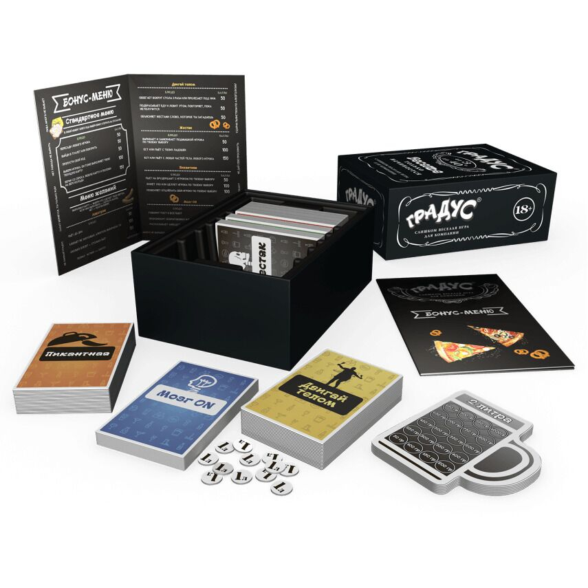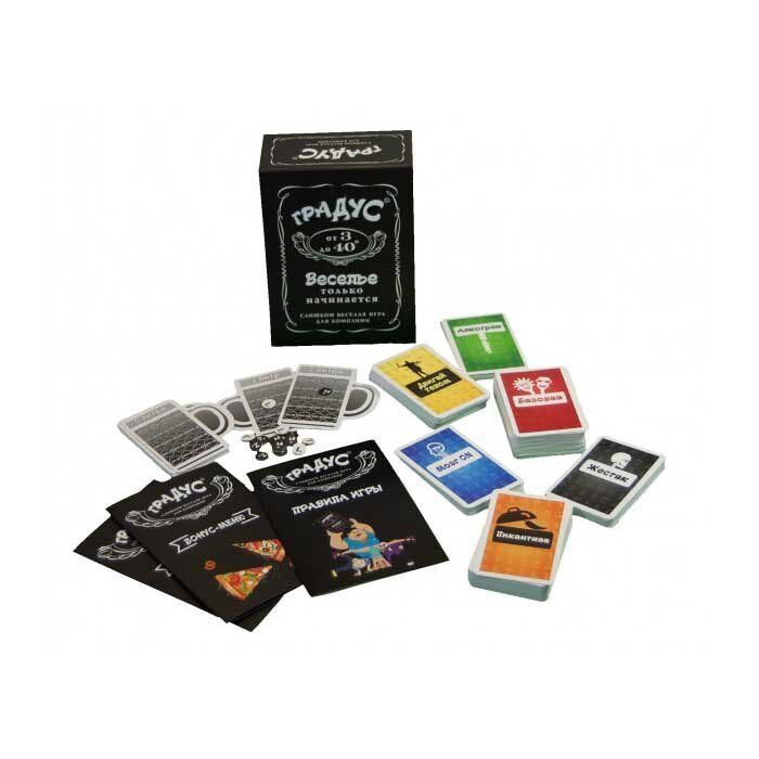 Застільна гра для компанії "Градус" запалить вечірку, підірве свято жартами, розважить приколами над друзями, влаштує даховий відпочинок і навіть додасть нотки еротики!