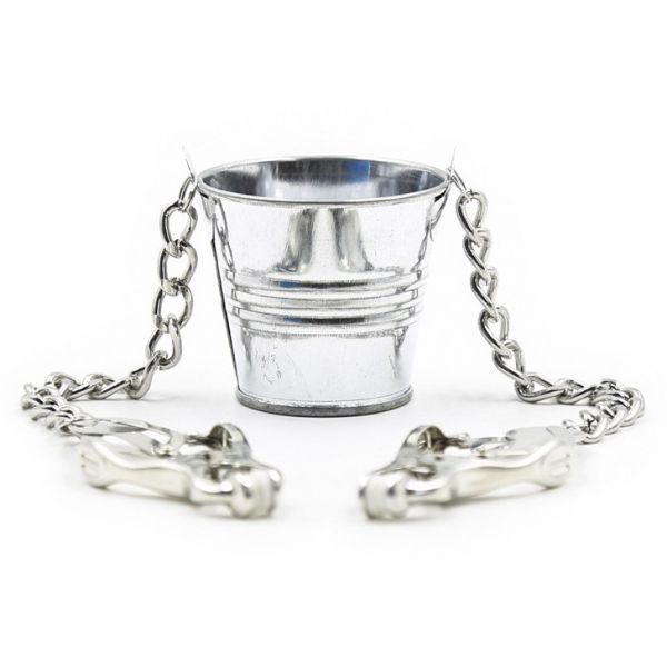 Ці розкішні та елегантні затискачі для конюшини не для слабкого серця. Пов'язані ланцюгом, затискачі стають трохи важчими, але це ще не все, до ланцюгів прикріплено спеціальне відерце в яке можна покласти додатковий обважнювач.