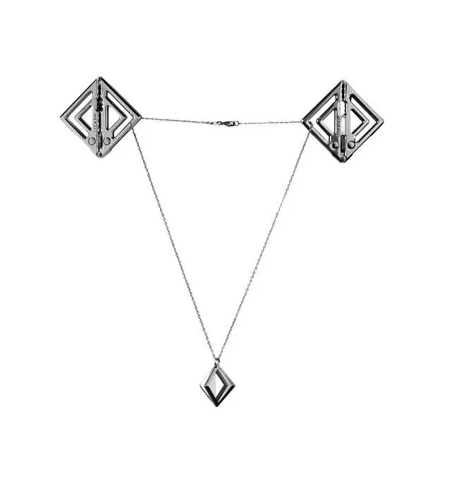 Підвіску можна кріпити до ланцюжка, що з'єднує між собою затискачі, створюючи таким чином додаткове навантаження на соски.