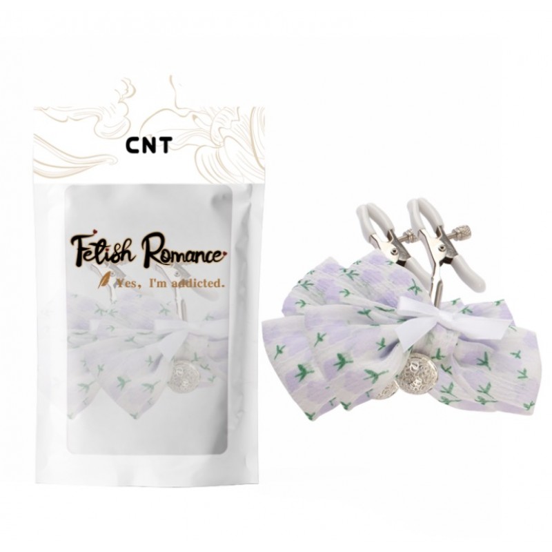 Затискачі для сосків БДСМ з силіконовими наконечниками та білими бантиками та зеленим візерунком Cnt