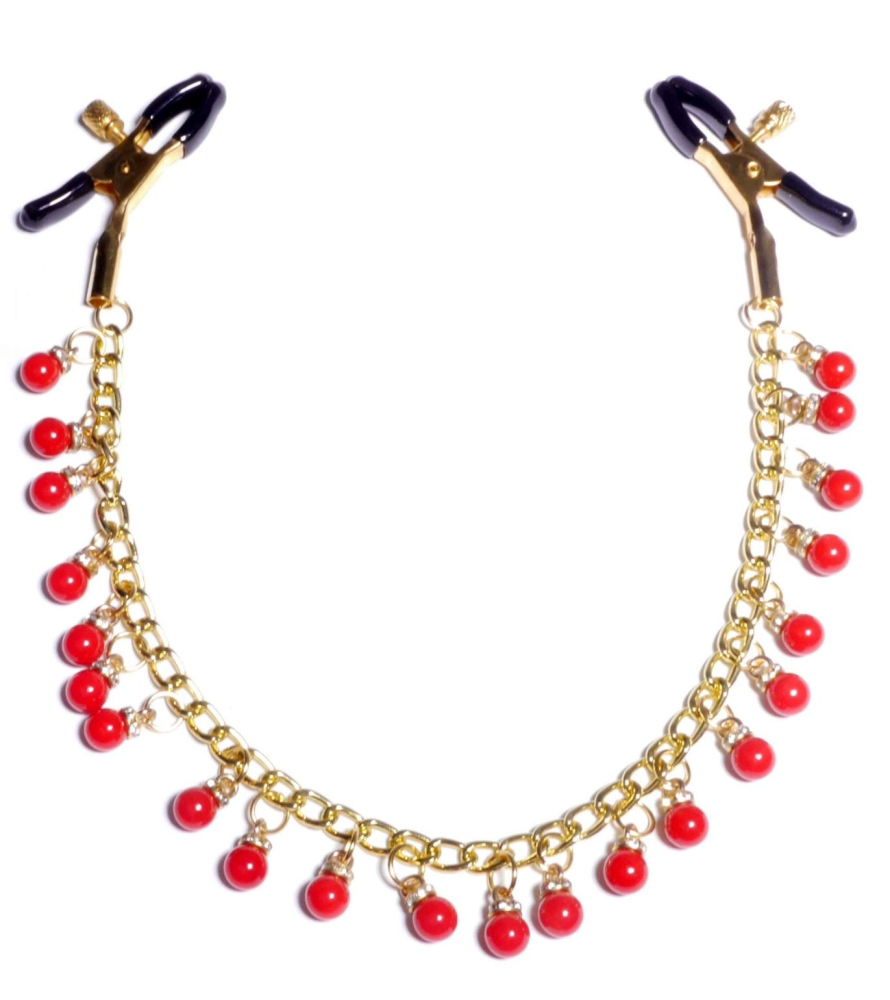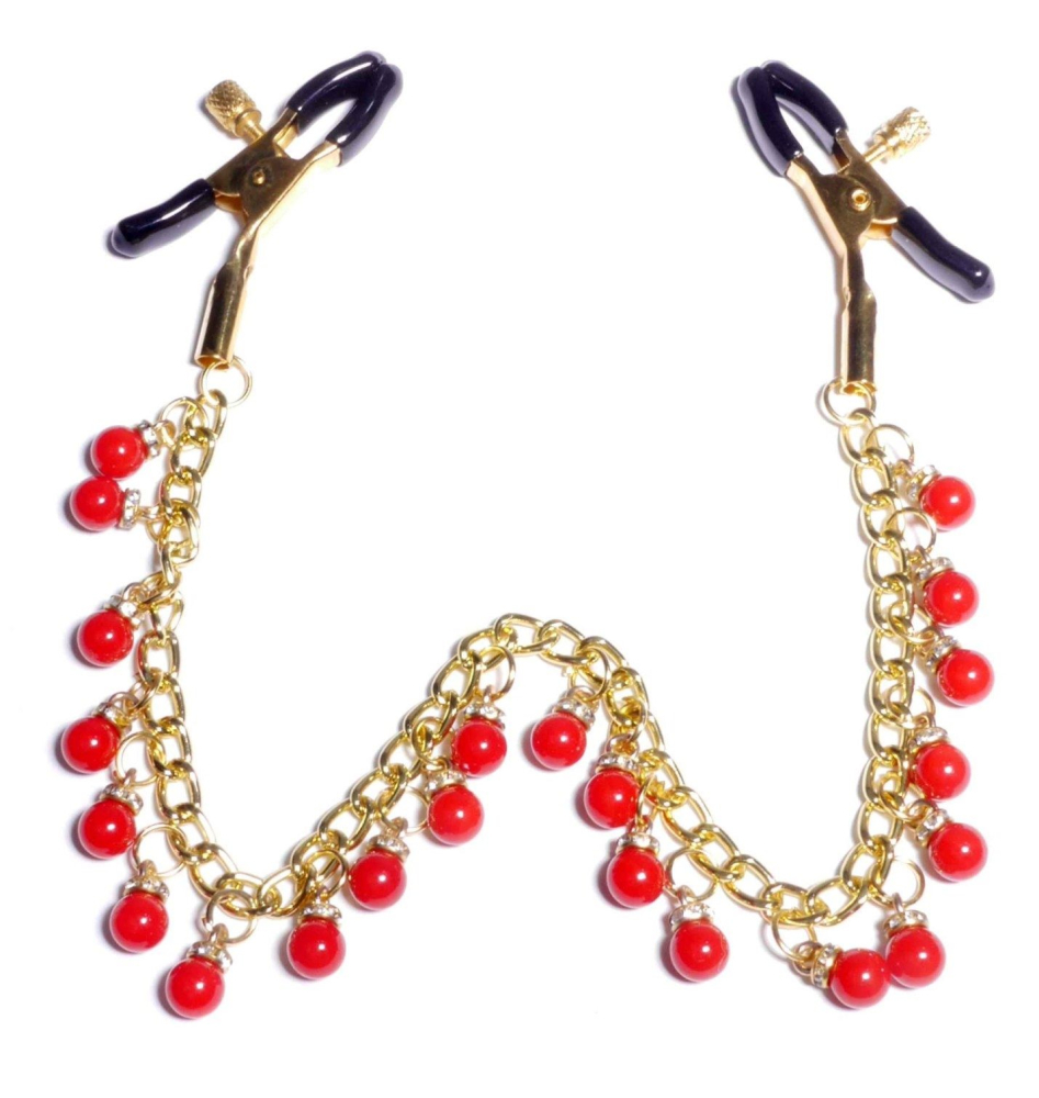 Затискачі для сосків на золотистому ланцюжку з червоними камінчиками BOSS of TOYS Fetish Boss Series №15