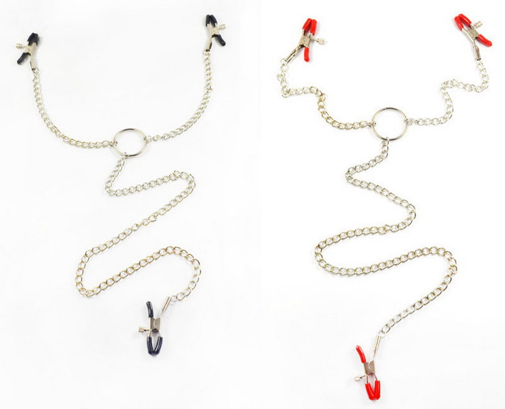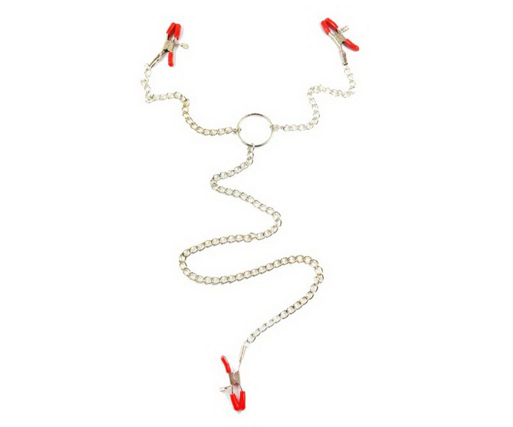 Характеристики Затискачі для сосків та клітора червоного кольору БДСМ на сріблястому металевому ланцюжку Scappa