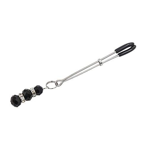 Елегантна прикраса, яка не залишить байдужим вашого партнера та подарує нові гострі відчуття під час секс гри. Затискачі- це нова, ні з чим не порівняна стимуляція, де насолода межує з легким збуджуючим болем. На кінчиках затискачів є спеціальні силіконові насадки, які захищають груди від сильного затискання та травмування. Регулюються затискачі петелькою, яка підтягується догори. Затискачі не важкі і підходять навіть новачкам. Загальна довжина виробу: 110 мм. Довжина затиску: 70 мм. Довжина прикраси: 40 мм. Колір: метал срібло, чорні намистини