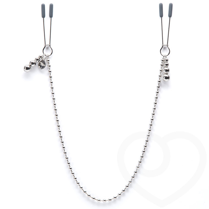 * Затискачі для сосків зроблені у вигляді пінцетів, з'єднаних між собою ланцюжком з підвішеними на них намистинами для гри з сосками.