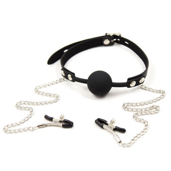 Затискачі для сосків з кляпом силіконовим у вигляді чорної кульки