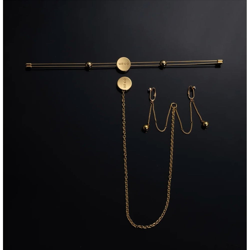 Затискачі для сосків з вібрацією UPKO Double Bar Vibration Nipple та кліторальний ланцюг, золотисті