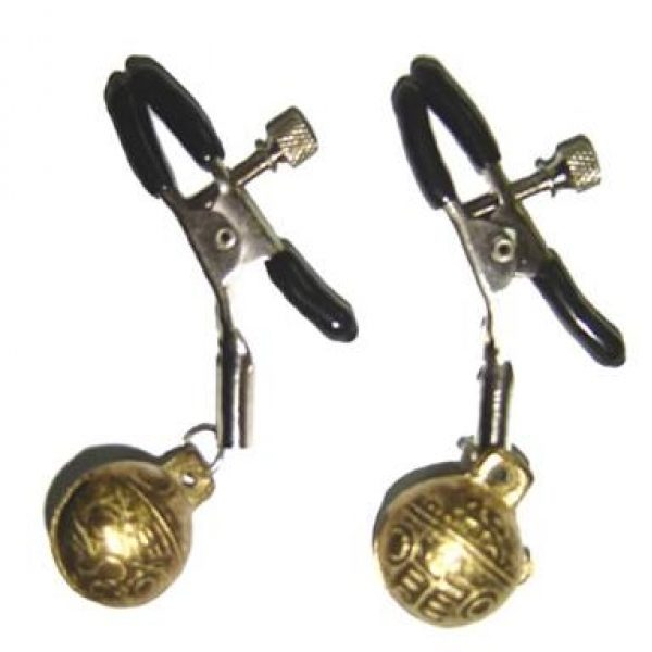Ніпельні затискачі для сосків з маленькими золотистими дзвіночками. Затискачі регулюються.