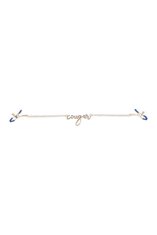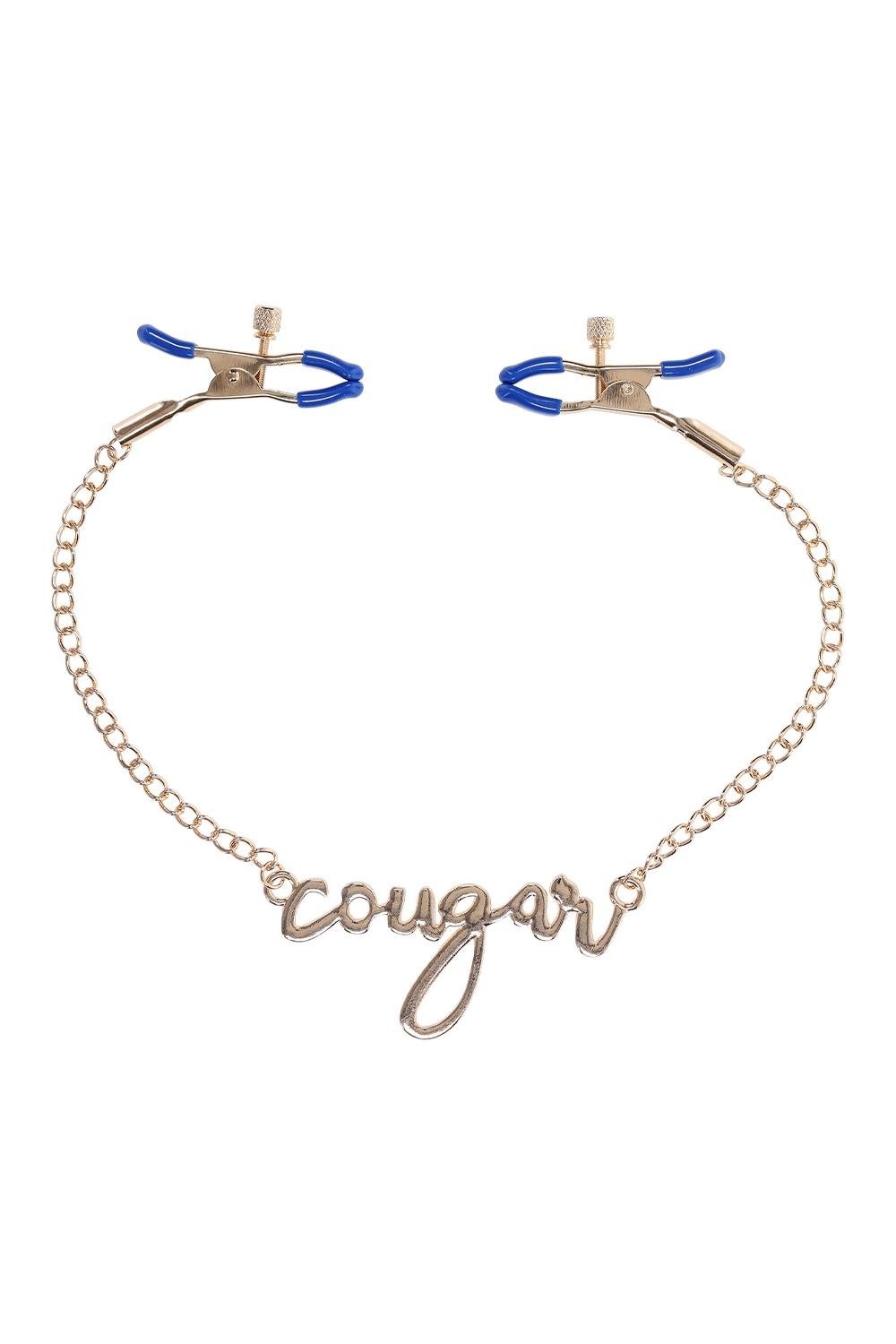 Затискачі для сосків Sex & Mischief на золотому ланцюжку зі словом «Cougar»