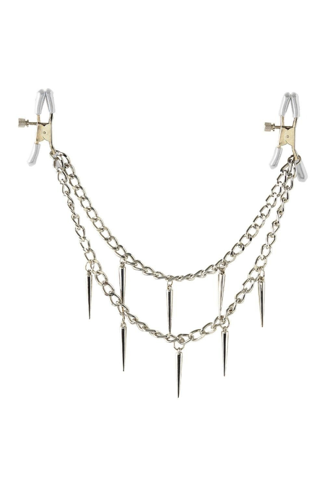Зроблені з міцних металевих затискачів та покриті м'якими гумовими вкладишами, ці затискачі ідеально підходять як для новачків, так і для любителів фетишу. Ступінь тиску, що чиниться на сосок, регулюється поворотом гвинта, тоді як два ланцюги забезпечують вам легку стимуляцію з кожним рухом.