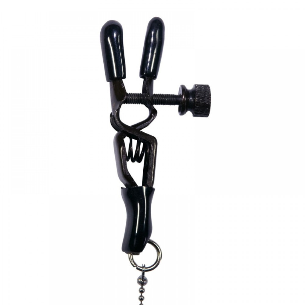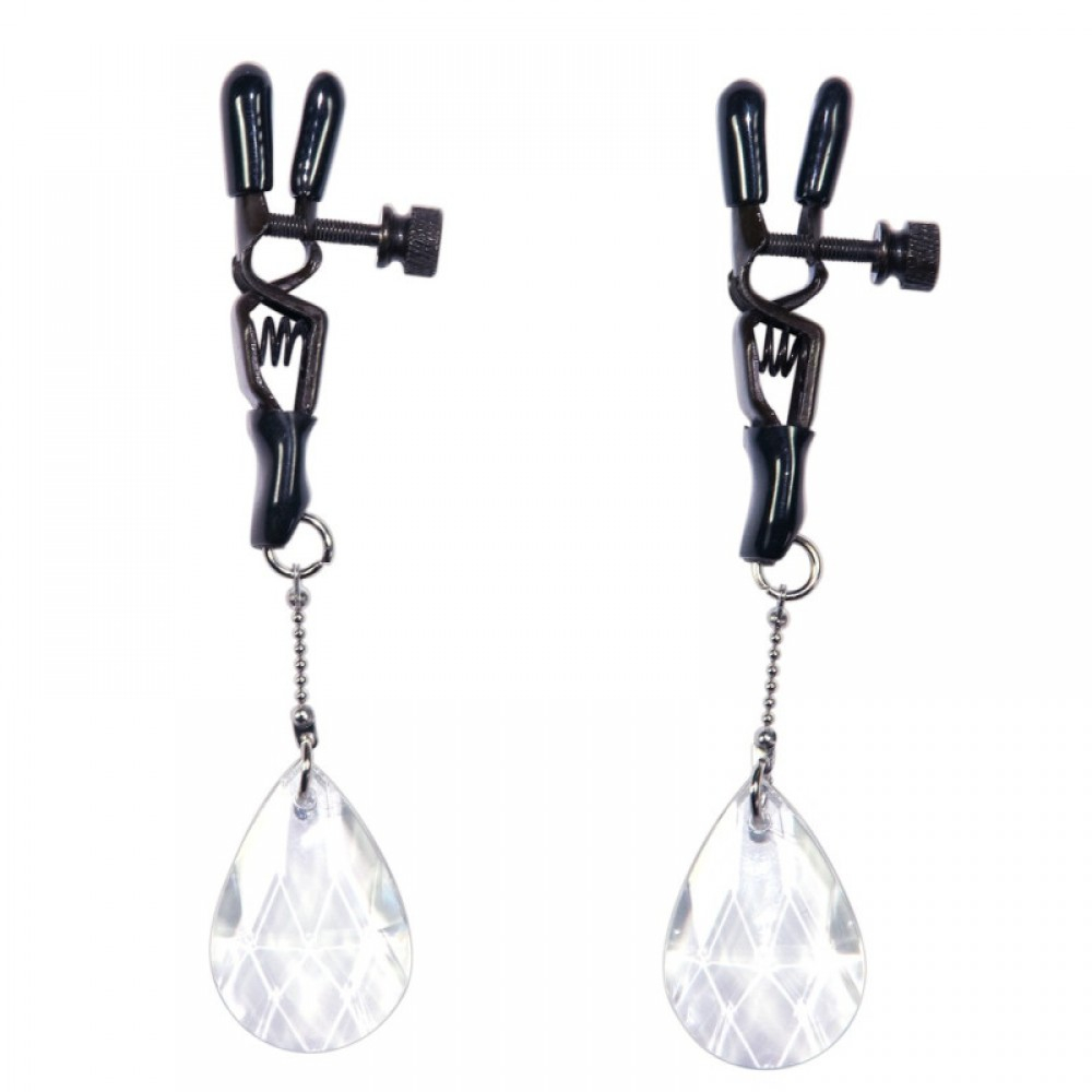 Затискачі для сосків з камінчиками БДСМ чорного кольору Bad Kitty