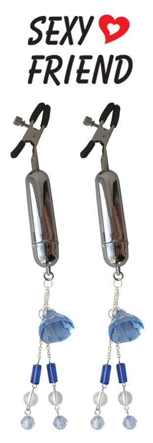 Затискачі на соски металеві з м'якими накладками і прикрасами з вібрацією Sexy Friend сині