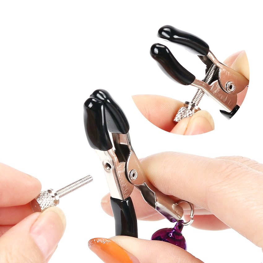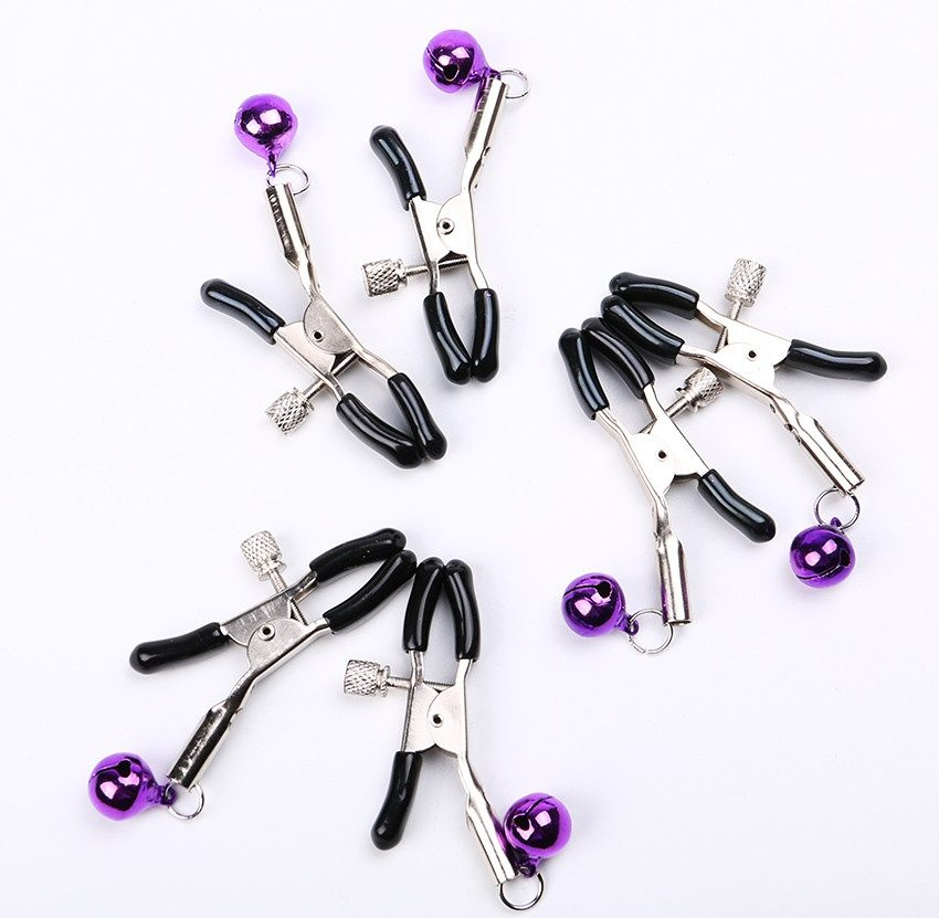 Соски є однією з найчутливіших зон нашого тіла. Деякі жінки при стимуляції сосків отримують оргазм, а в деяких ступінь збудження височить до межі-а точніше навіть свавілля! Затискачі на соски мають гостру дію на груди-для любителів пікантних і незвичайних ласок. Затиснувши соски прищіпками, обережно витягуйте їх, грайте затискаючи і розтискаючи, рухайте грудьми для дзвону дзвіночків або вибирайте позу, при рухах якої будуть чути дзвіночки-це так заводить! Затискачі на соски виготовлені з металу, мають спеціальні силіконові насадки на прищіпках, щоб не травмувати ніжні соски та гвинт, що регулює силу натискання. Фіолетові бубонці звисають вниз і на грудях виглядають дуже сексуально. Матеріал затискачів: метал Матеріал насадки: силікон Колір бубонців: фіолетовий Довжина затиску: 56мм Ширина відкритого прищіпки: 16 мм Вага: 15г