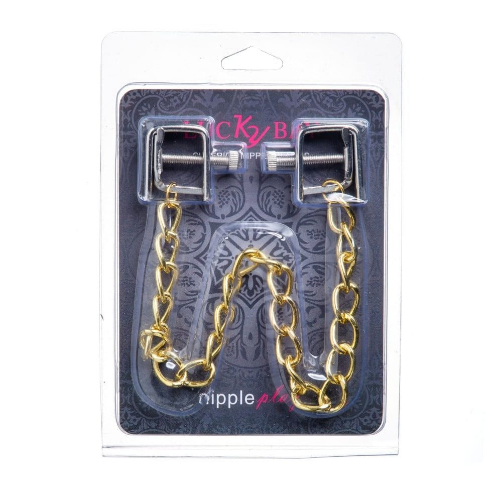 Характеристики Затискачі на соски з золотистим ланцюжком Nipple play квадратні Gold Cnain