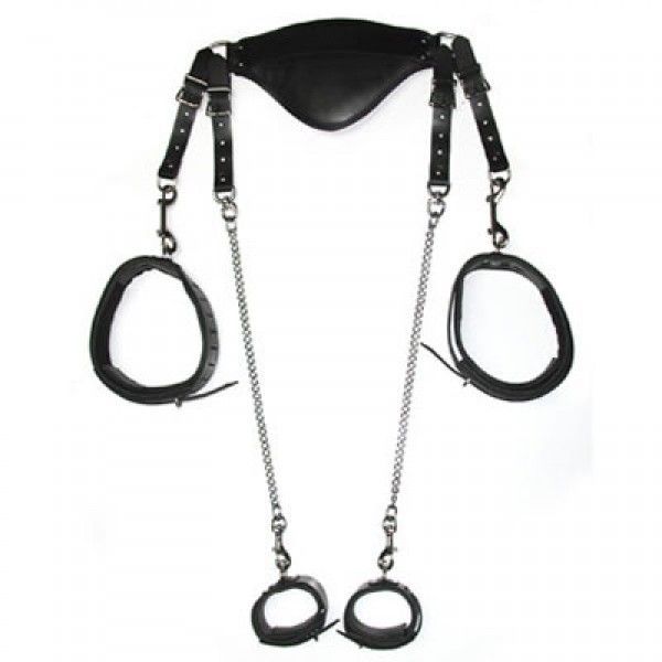 Сексуальний Жіночий бондаж з натуральної шкіри. Він скріплює шию стегна, щиколотки і коліна. Всі ремені міцні і регульовані. Розміри: довжина нашийника 28 см, Довжина ременів для стегон 22-30 см.
