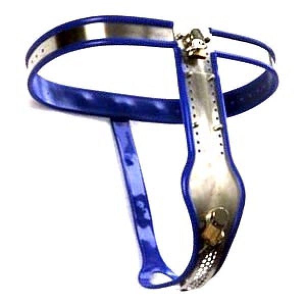 Жіночий пояс вірності БДСМ із нержавіючої сталі синього кольору Bdsm4u Model T Premium