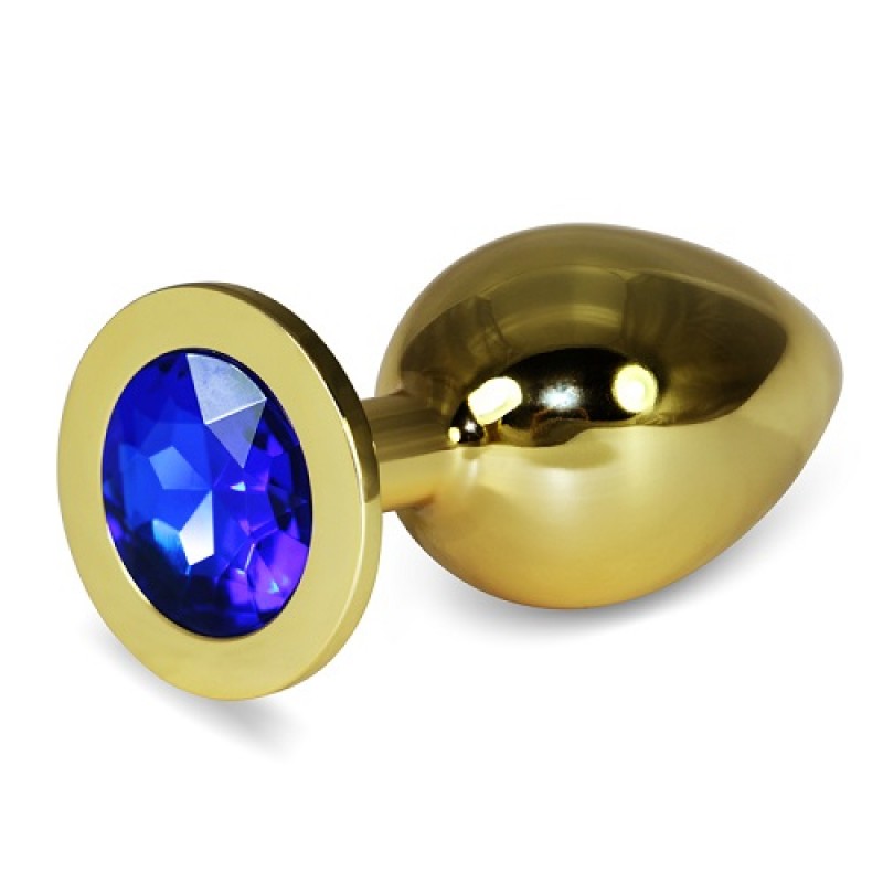 Анальна пробка із нержавіючої медичної сталі золотистого кольору з синім каменем Bdsm4u розмір Large