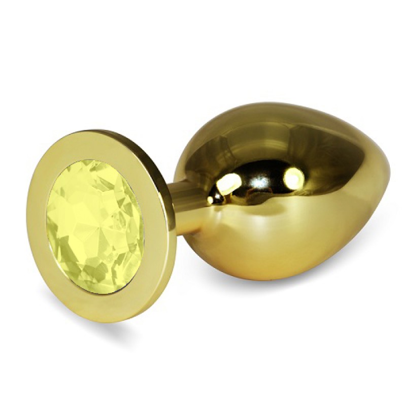 Анальна пробка із нержавіючої медичної сталі золотистого кольору з жовтим каменем Bdsm4u розмір Large