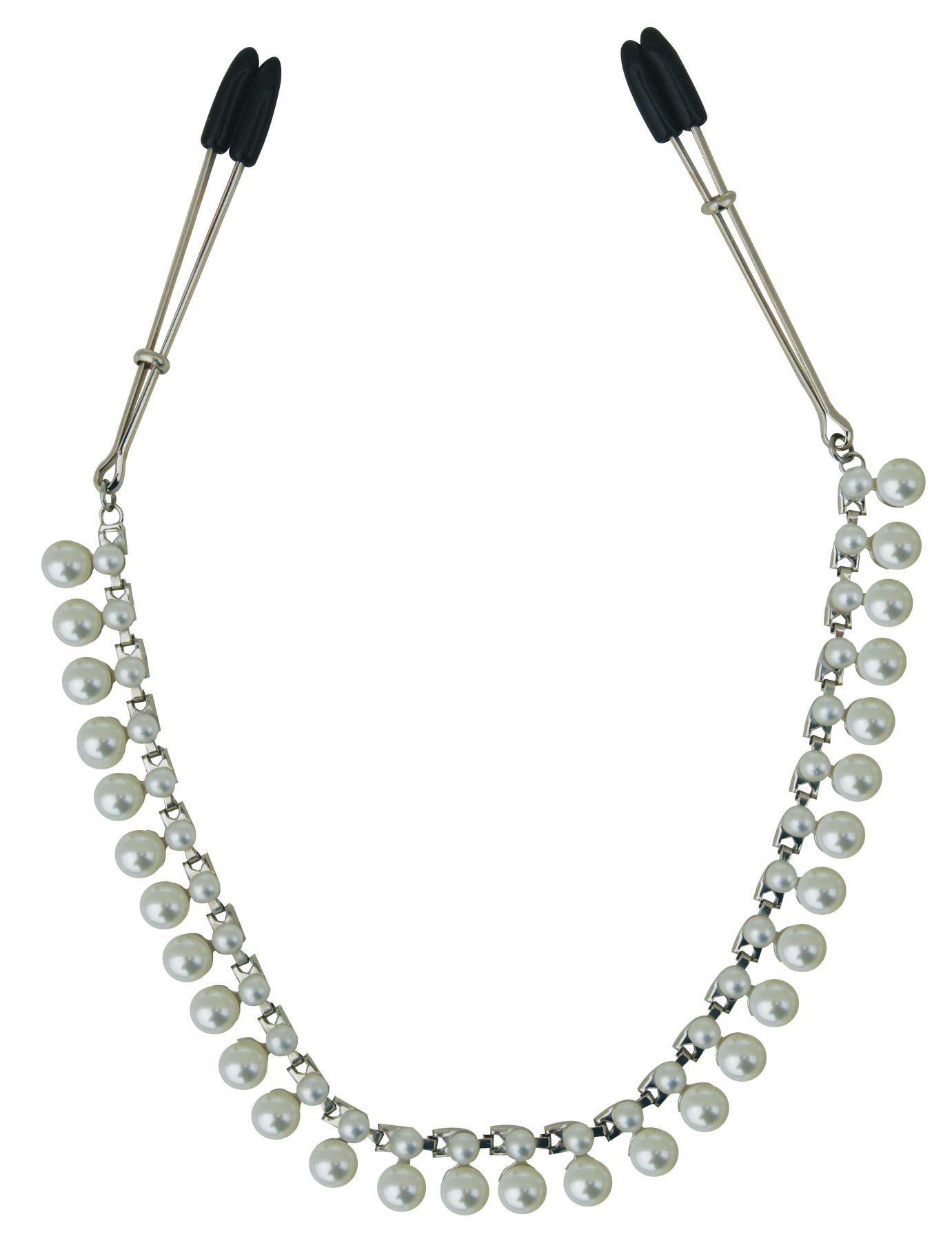 Цепочка с зажимами для сосков Sportsheets Midnight Pearl Chain Nipple Clips украшена прекрасным жемчужными бусинками, а на концах удобные зажимы с резиновыми наконечниками.