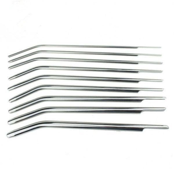 Катетеры для уретры нержавеющая сталь 9 шт (4 мм-12 мм). Профессиональные медицинские катетеры для глубокого ввода в уретру. Сделаны из полированной нержавеющей стали.. Такой катетер максимально безопасен в использовании, как для новичков, так и для профессионалов. Для стимуляции мужского члена просто поднесите катетер к уретральному входу вертикально и наслаждайтесь, как под собственной тяжестью он постепенно погружается все глубже и глубже, стальная прохлада обеспечит введение максимально комфортным. Малые размеры могут быть использованы для стимуляции женского уретрального канала. Набор уретральных катетеров 9 штук.