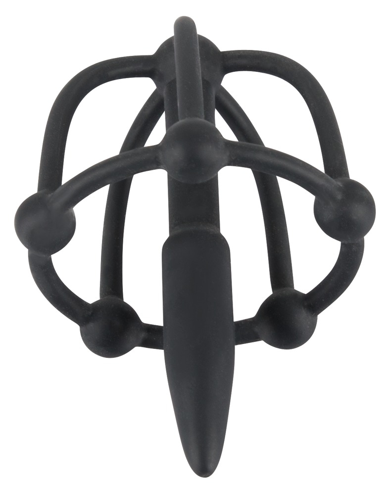 Уретральный стимулятор с клеткой для головки БДСМ силиконовый черного цвета You2Toys