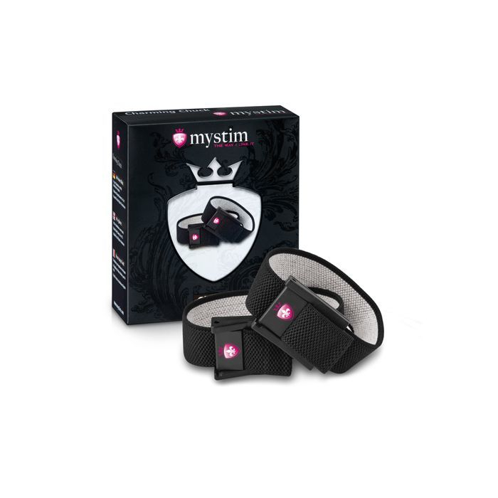Утяжка для пениса Mystim Charming Chuck представляет собой 2 ремня для крепления на любом месте пениса или на яичках. Ремни регулируются, так что идеально подойдут на любой размер и позволят как мягко зафиксировать член и яички, так и оказать значительное давление. Усилить эрекцию, задержать момент эякуляции — это все понятно, но данная утяжка совершенно особенная, так как к петлям подсоединяются электроды для электрического воздействия на член.