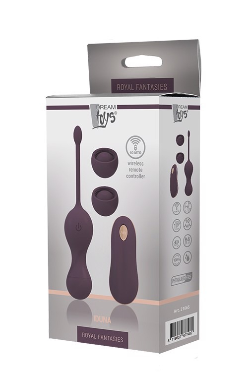 Iduna - это вибрирующее яйцо с шариком Кегеля, изготовленное из безопасного силикона и ABS, с беспроводным пультом дистанционного управления.