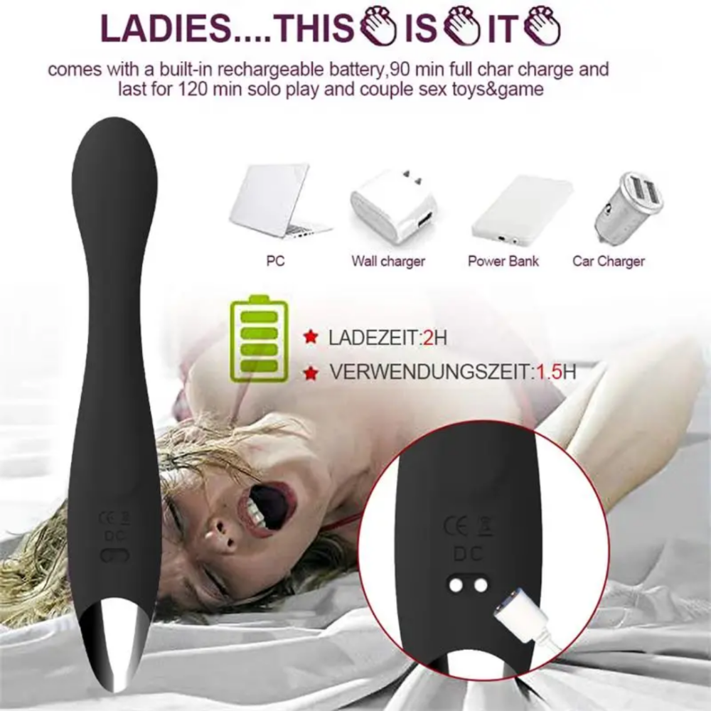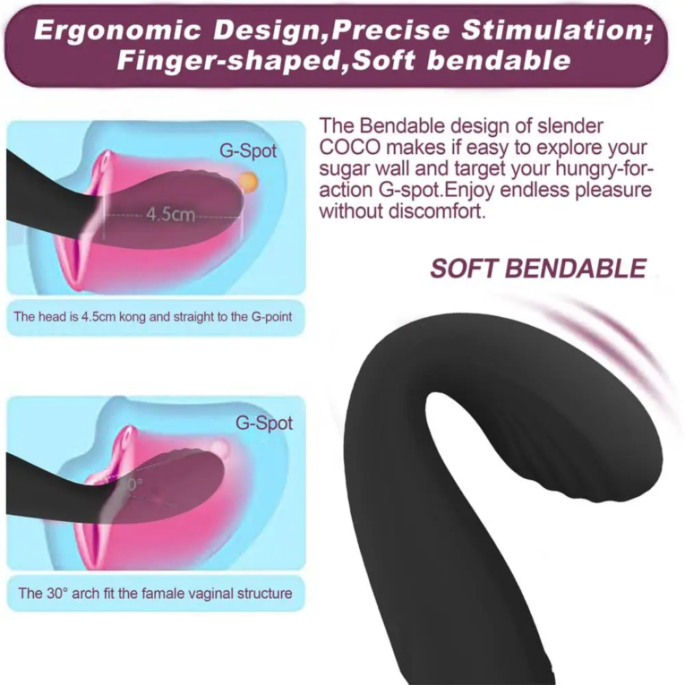 медицинского силикона чёрного цвета, имеет правильно изогнутую форму для стимуляции точки G, и 10 различных режимов вибрации. Гибкая и утолщённая головка бесспорно достанет до самой жаркой точки, а мощная вибрация добавит яркости оргазму.