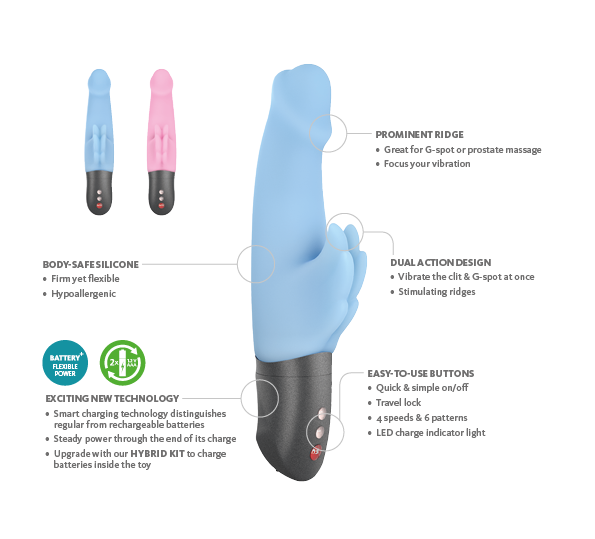 Новинка! Линейка вибраторов Battery+ с увеличенной мощностью вибрации. Работают как от батареек так и от аккумуляторов (продаются отдельно в наборе Hybrid Kit). Уникальная технология зарядки прямо внутри вибратора различает аккумуляторы от батареек. Лучшее из двух миров - все преимущества батареечного вибратора без недостатков батареек!