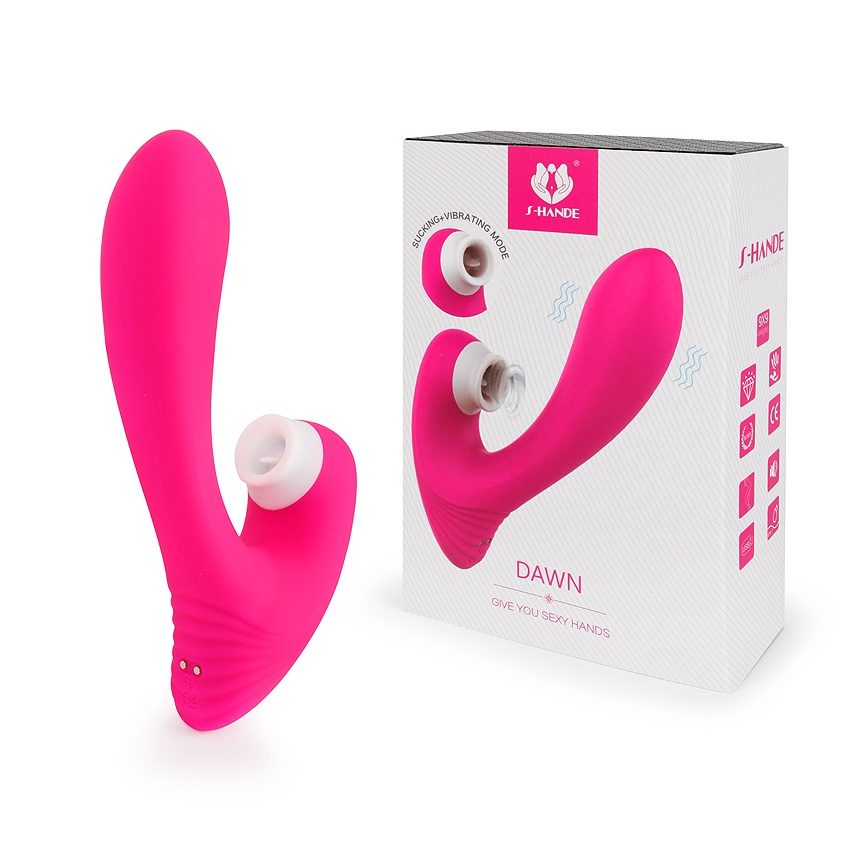 Вагинальный вибратор с вакуумной стимуляцией клитора розовый S-hande